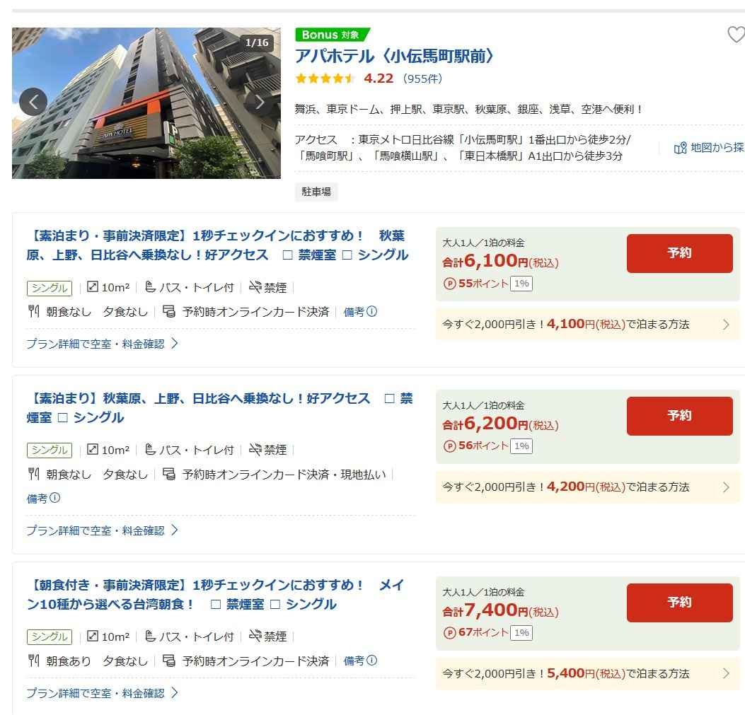 上野のスーパーホテルも急遽泊まろうと思ったら土曜なのに4人2部屋1人6000円で泊まれた