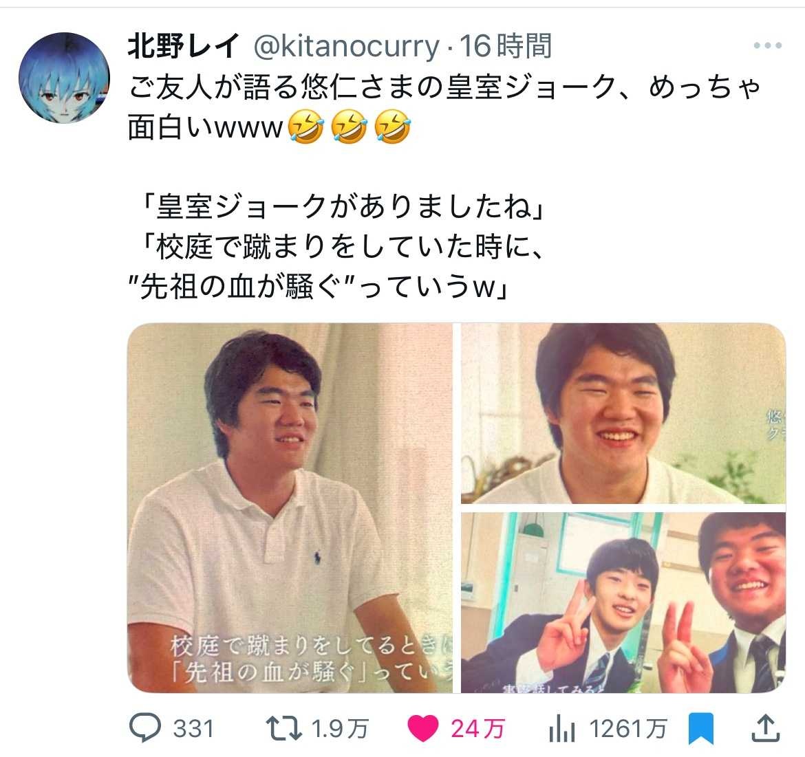 悠仁さま、御友人に皇室ジョークを披露「蹴まりを見ると先祖の血が騒ぐ」