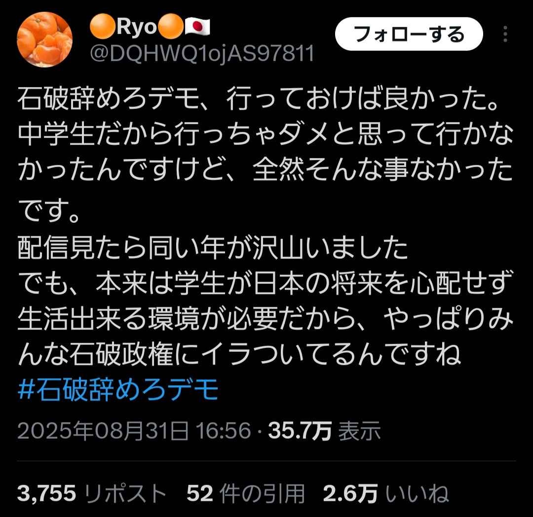 中学生が今やるべきことは石破やめろデモに参加することではなく、勉強することやね
