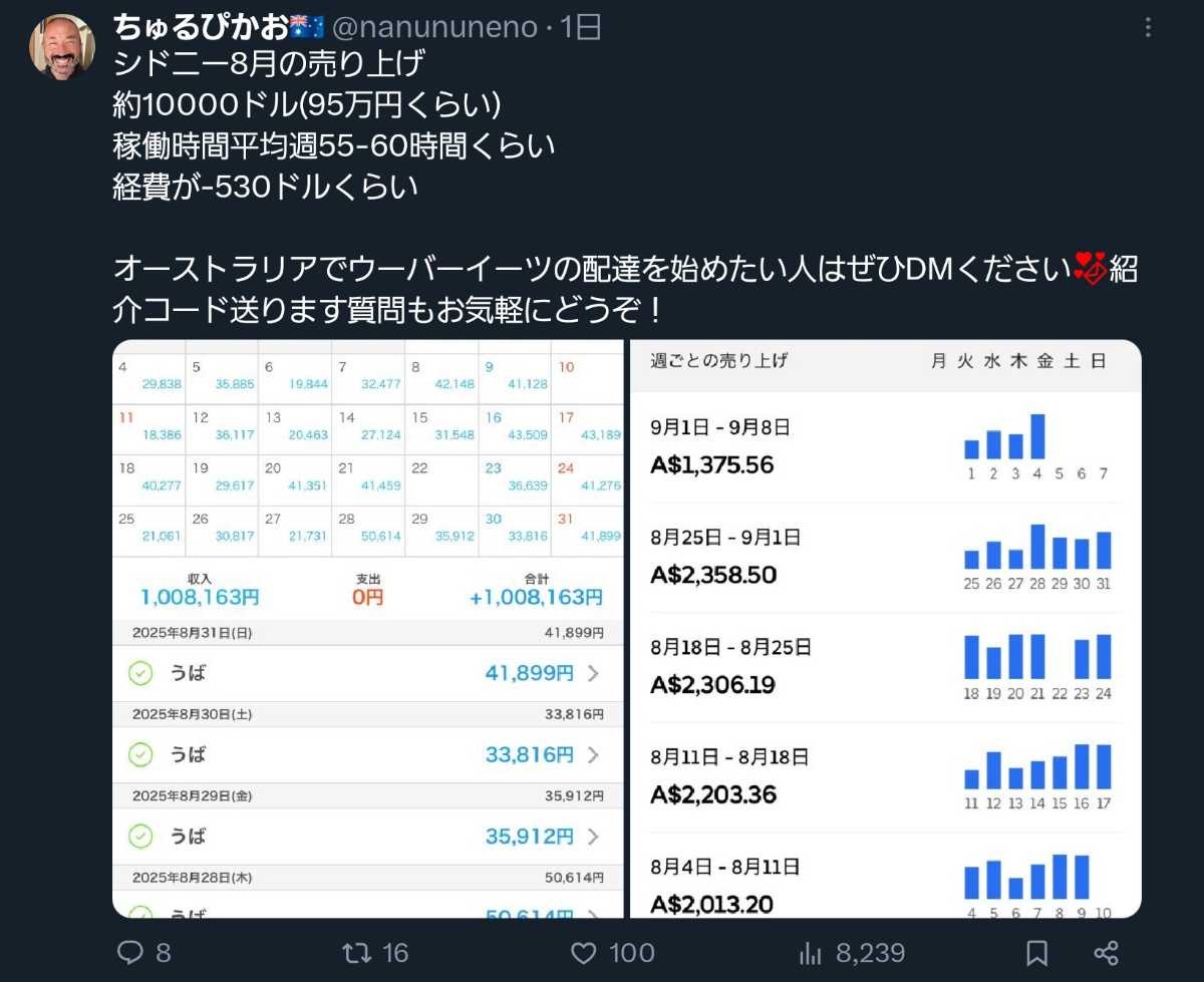 ガチでオーストラリアは物価高いから向こうで質素な暮らしをすれば稼げる(Uberが稼げるかは知らん)辛い暮らしになるけどね
