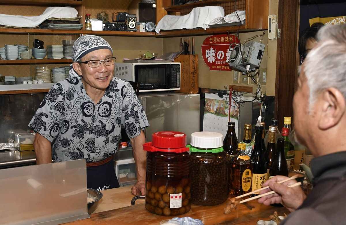 常連客だったおいらせ町の落合秀士さん(58)が受け継ぎ、「地ものや 落合」として5日にオープンした。秘伝の串揚げのたれを再現するほどの研究熱心ぶりに、もつけの店主だった川嶋旺(さかり)さん(78)は「一番弟子のようなもの。彼なら大丈夫」と太鼓判を押す。