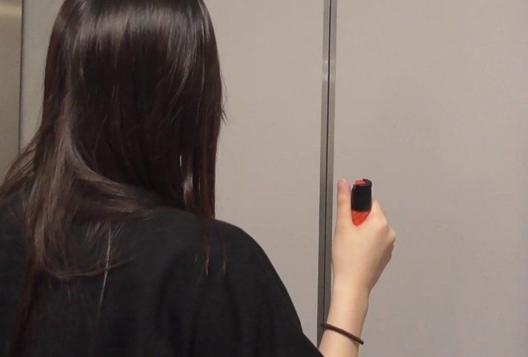 一時的に視界奪っても狭いエレベーターの中じゃ絶対に捕まる