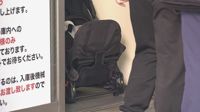 シャッターを開けようとしたところ、車を載せる台=パレットが車庫内で動いて隙間ができ、そこから車の外に置いていたベビーカーが地下に転落したということです。