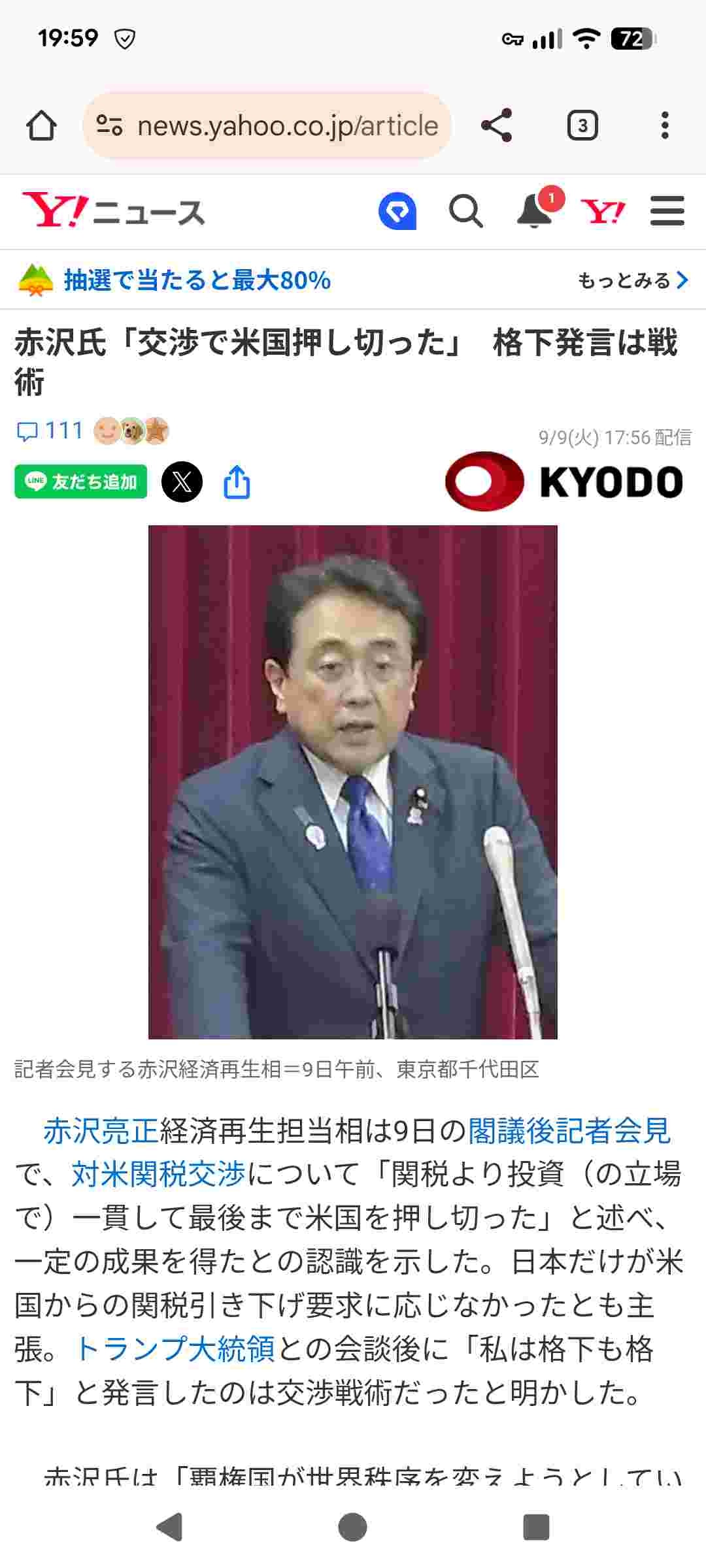 赤沢「国民に誤解を与える手口でトランプにも誤解を与えてやったwww理解力www」