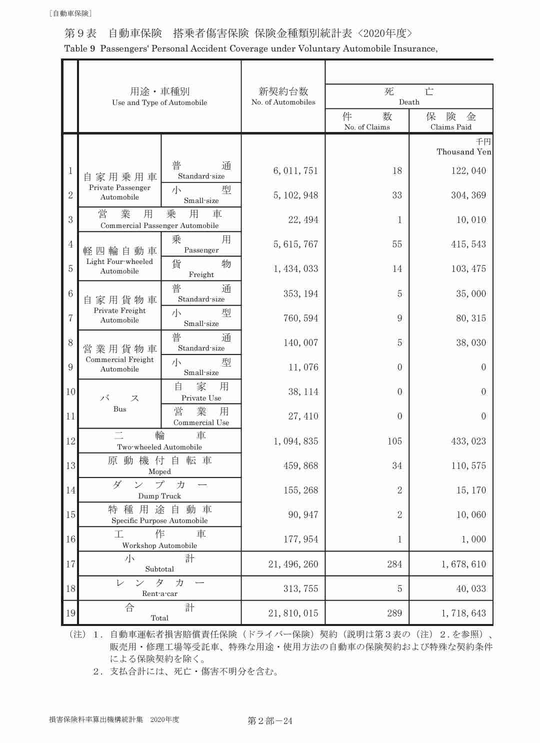 ・100万台あたりの搭乗者死亡数(2020年度+2021年度)