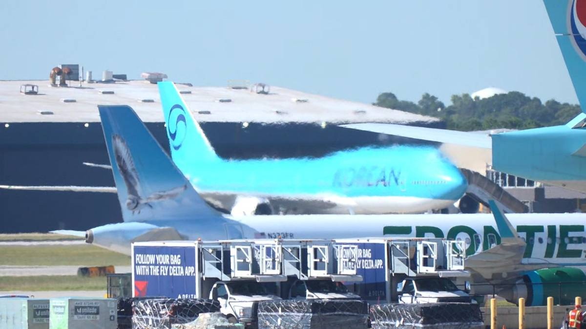 アトランタ国際空港に10日、「KOREAN」と書かれた韓国のチャーター機が到着しました。