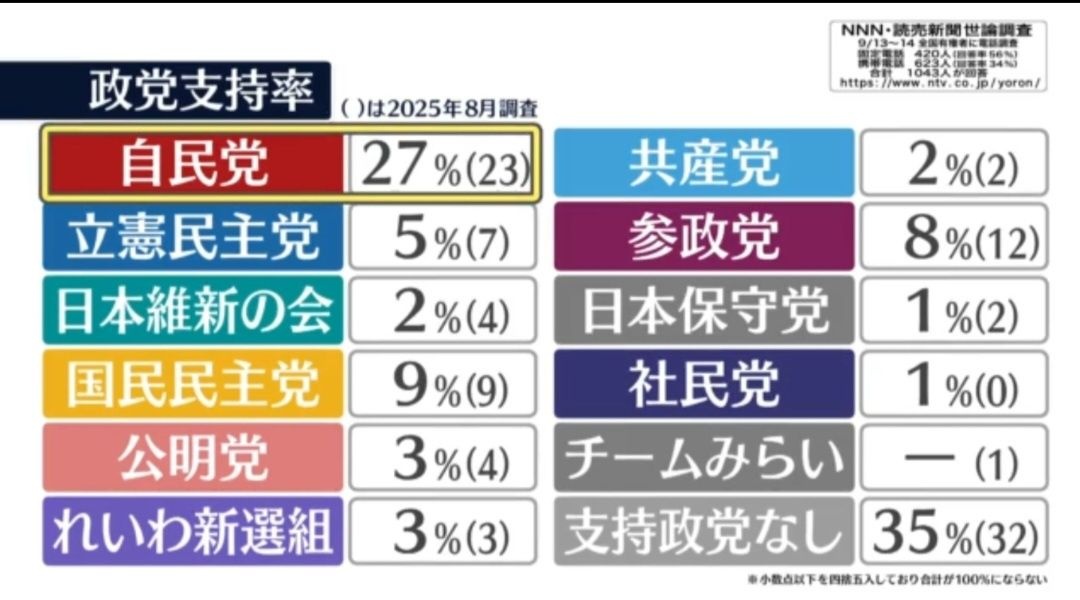 無党派35(+3)https://www.yomiuri.co.jp/
