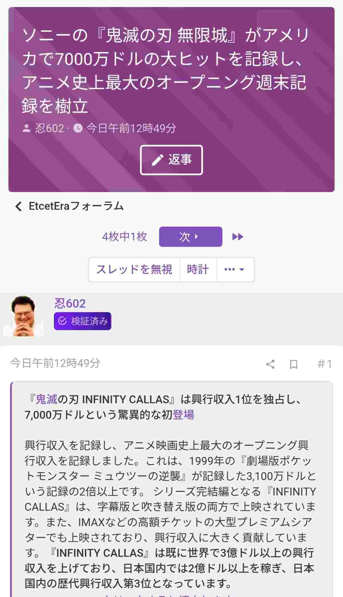 昨日か一昨日のスレタイは「アメリカでアニメ映画の興収で歴代1位」とかデマ書いててやばかった