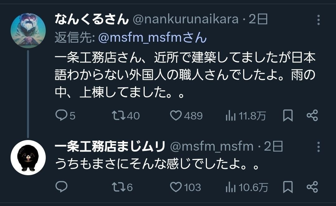 普通の日本人「ギャオオオン!外国人大工のせいで住宅のクオリティが下がってるのおおお!」