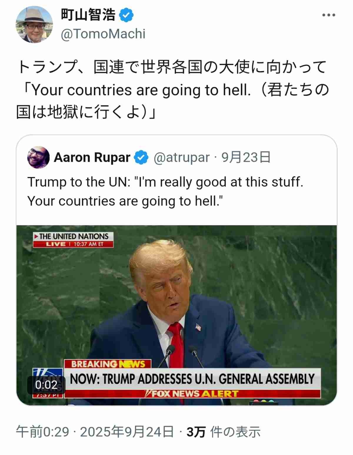 「あなた方の国は地獄に落ちる」 トランプ氏、国連でもMAGA論法