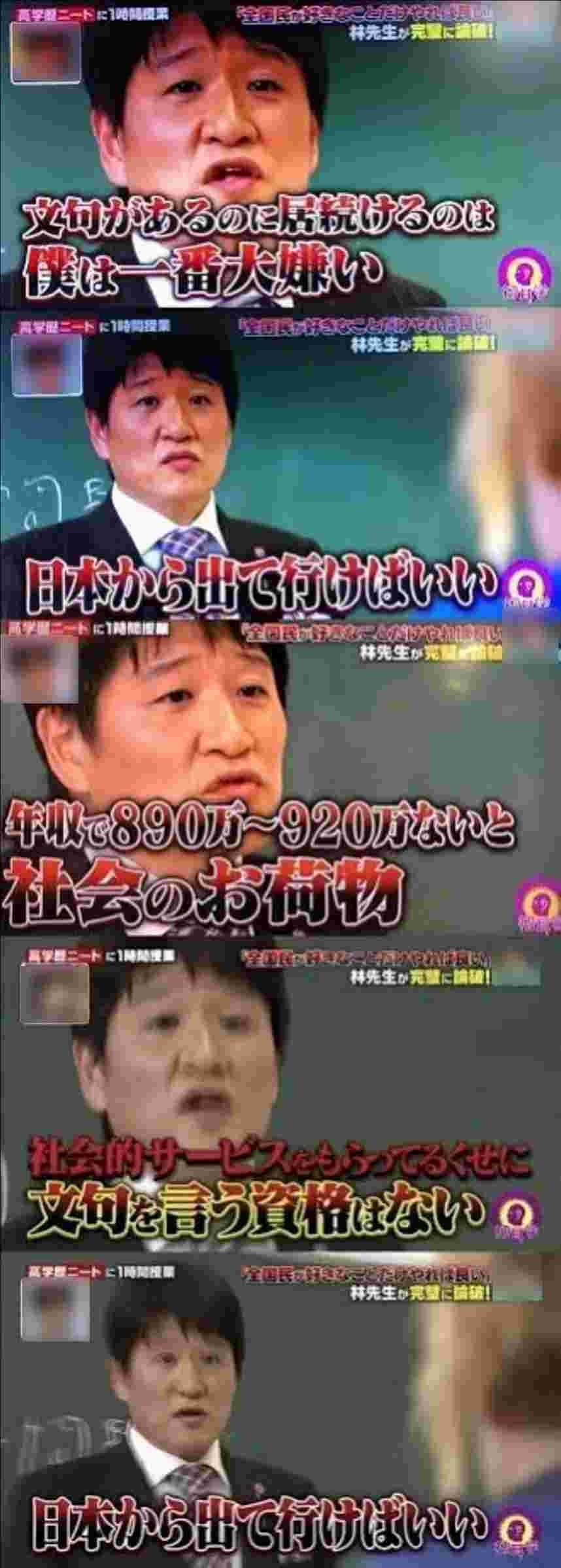 林先生か「年収890~920万ない人は社会のお荷物」とは言ってたとしても誹謗中傷したらあかんやろ
