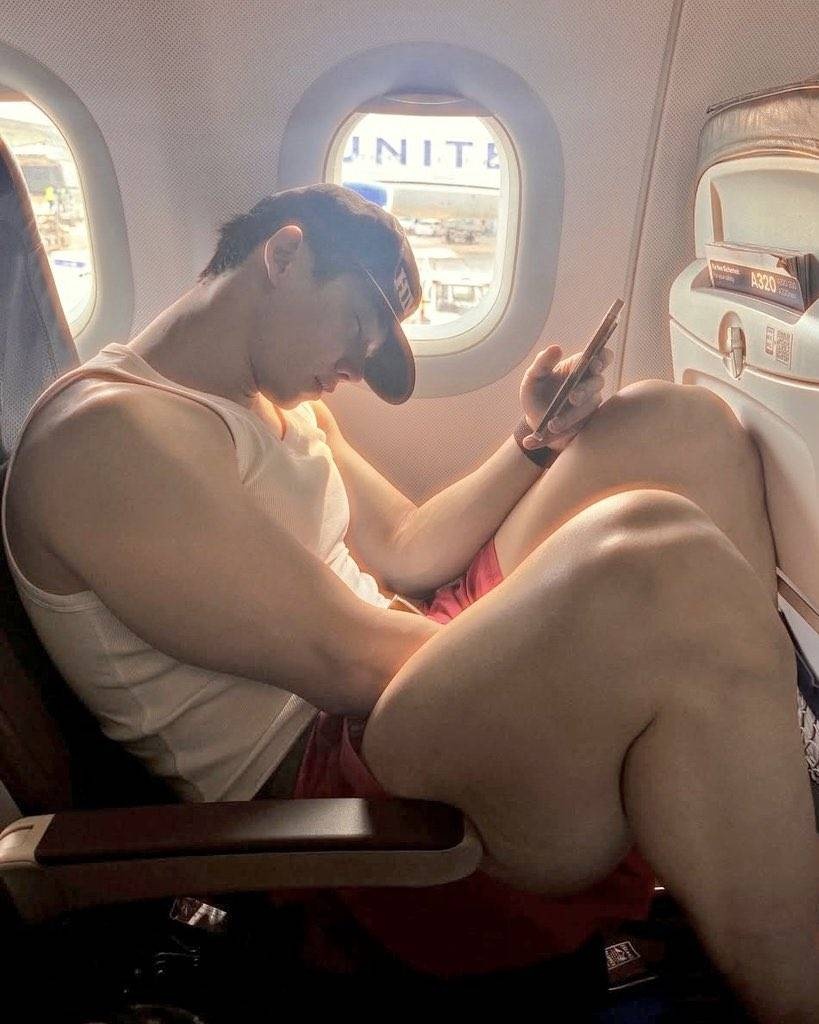 @飛行機の隣の席がでかいマッチョで死んだ。ふとももと腕がでかすぎて俺の席までムチムチくっついてくる