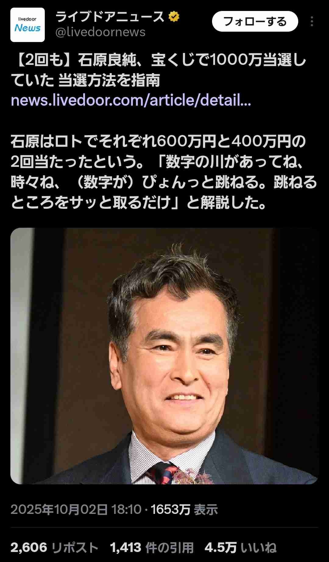 この日の番組テーマにちなみ、大逆転したエピソードについて聞かれた石原は「宝くじ」とニヤリ。