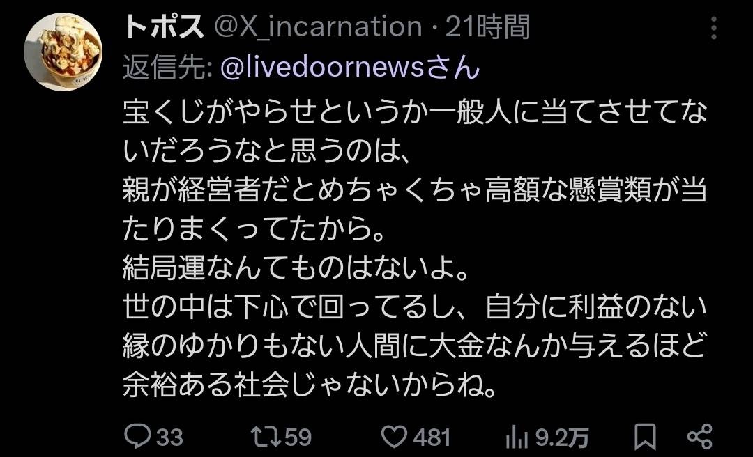 高額当選したら周りに言いふらすのは良くないって学ばなかったのコイツ