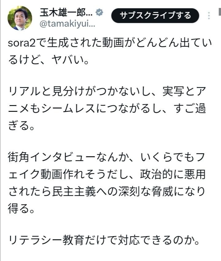 sora2で生成された動画がどんどん出ているけど、ヤバい。リアルと見分けがつかないし、実写とアニメもシームレスにつながるし、すご過ぎる。