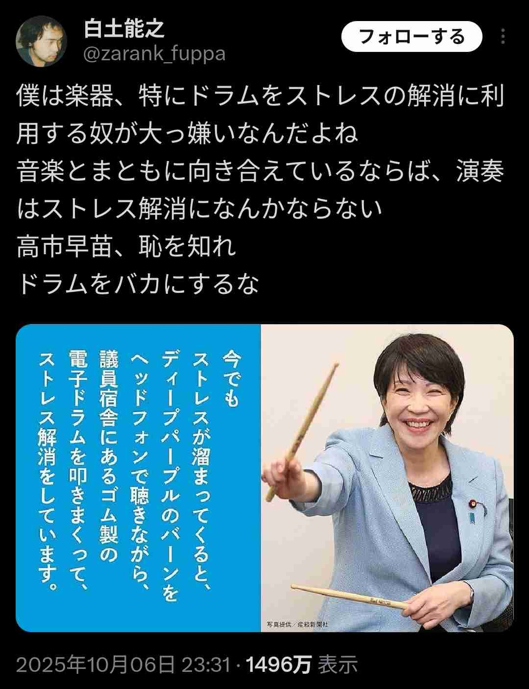 どちらかと言えばドラム馬鹿にしてるのは高市ではなく自分自身やろな