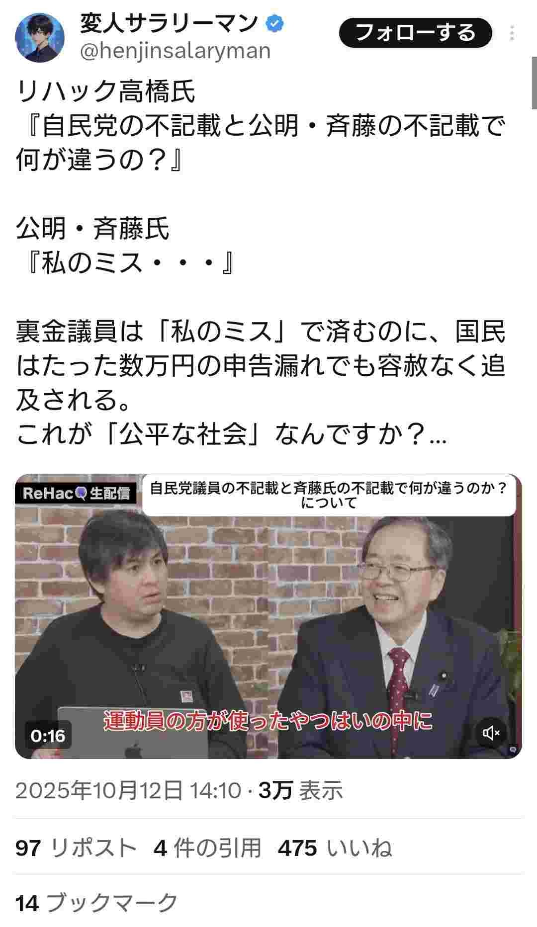 自民の裏金は党ぐるみで悪質だからここまで問題になった、修正申告だけで済んだ斎藤とは質が違う