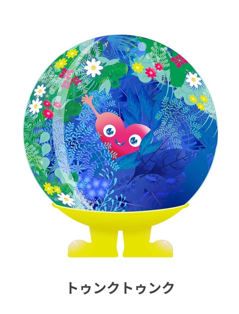 トゥンクトゥンクは、博覧会HPによると、宇宙の彼方から地球に憧れてやって来た好奇心あふれる精霊で、地球がきれいだと花を咲かせる一方、地球が汚れると悲しくなって元気がなくなるという。