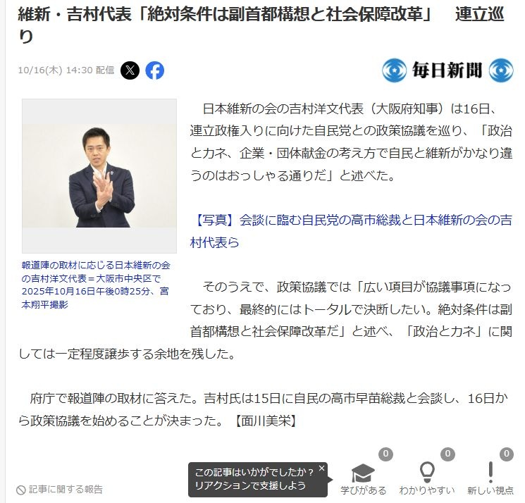 でもこれを受け入れれば高市は総理になれて政権樹立できるからたぶん呑むよ