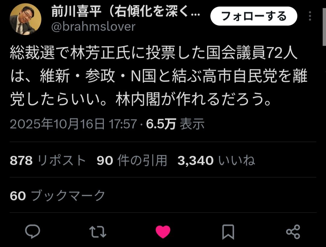 高市聖帝即位で林の順番が来ないとか、順番が来るまでに自民が消える可能性があるなら考えるかもだが