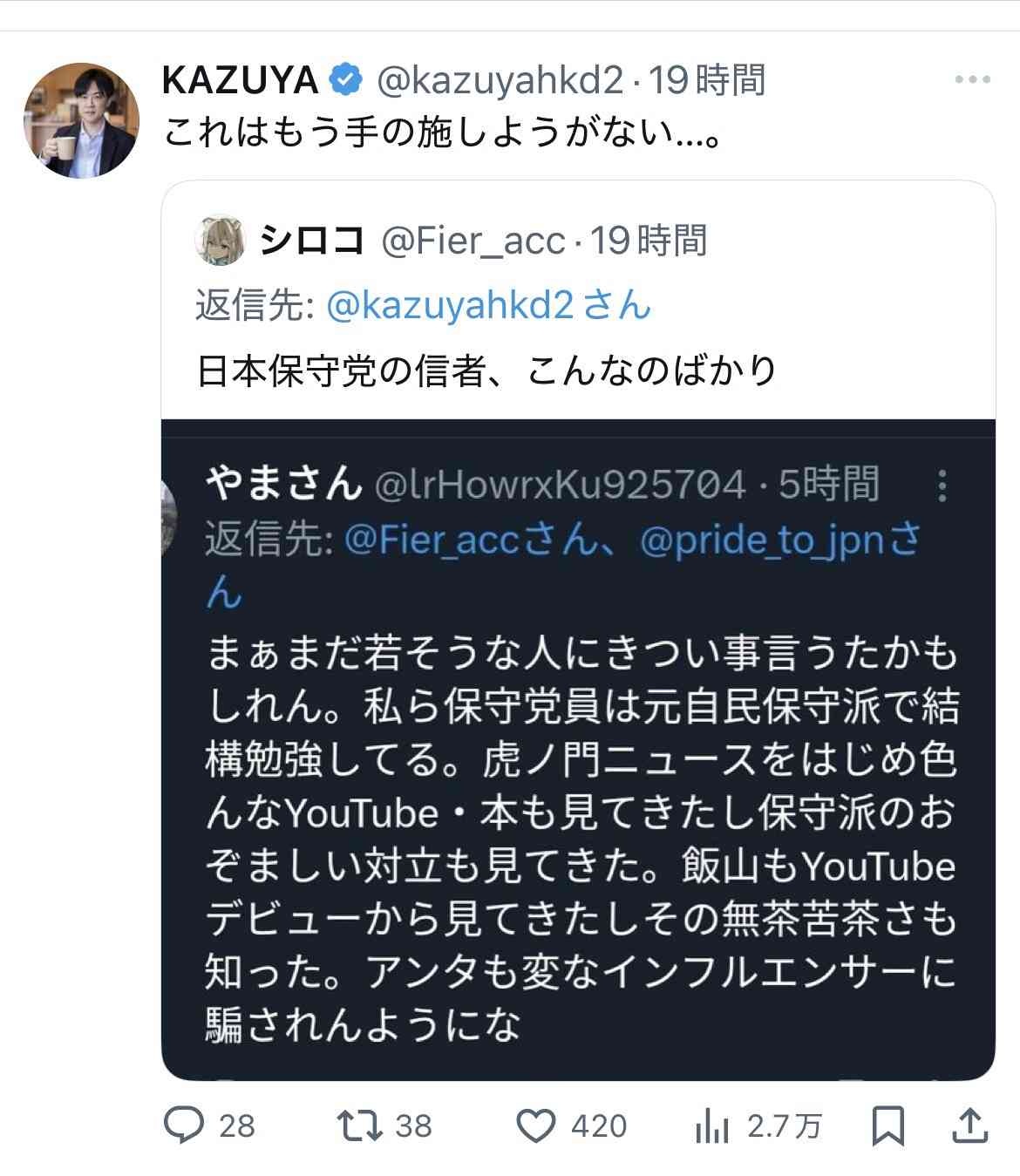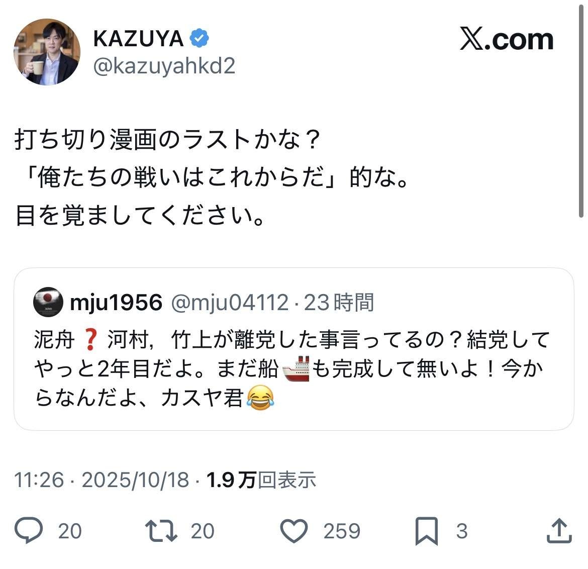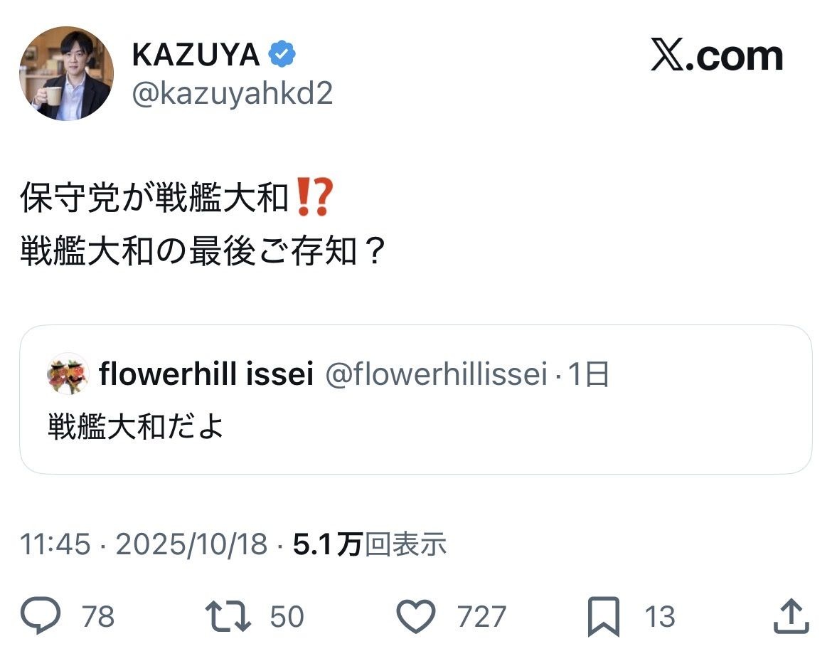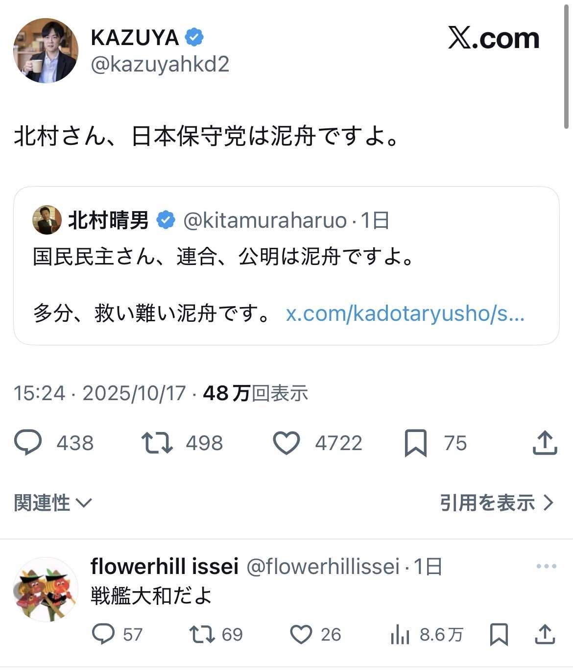 KAZUYA「日本保守党は泥船ですよ」支持者激怒「戦艦大和だよ💢」