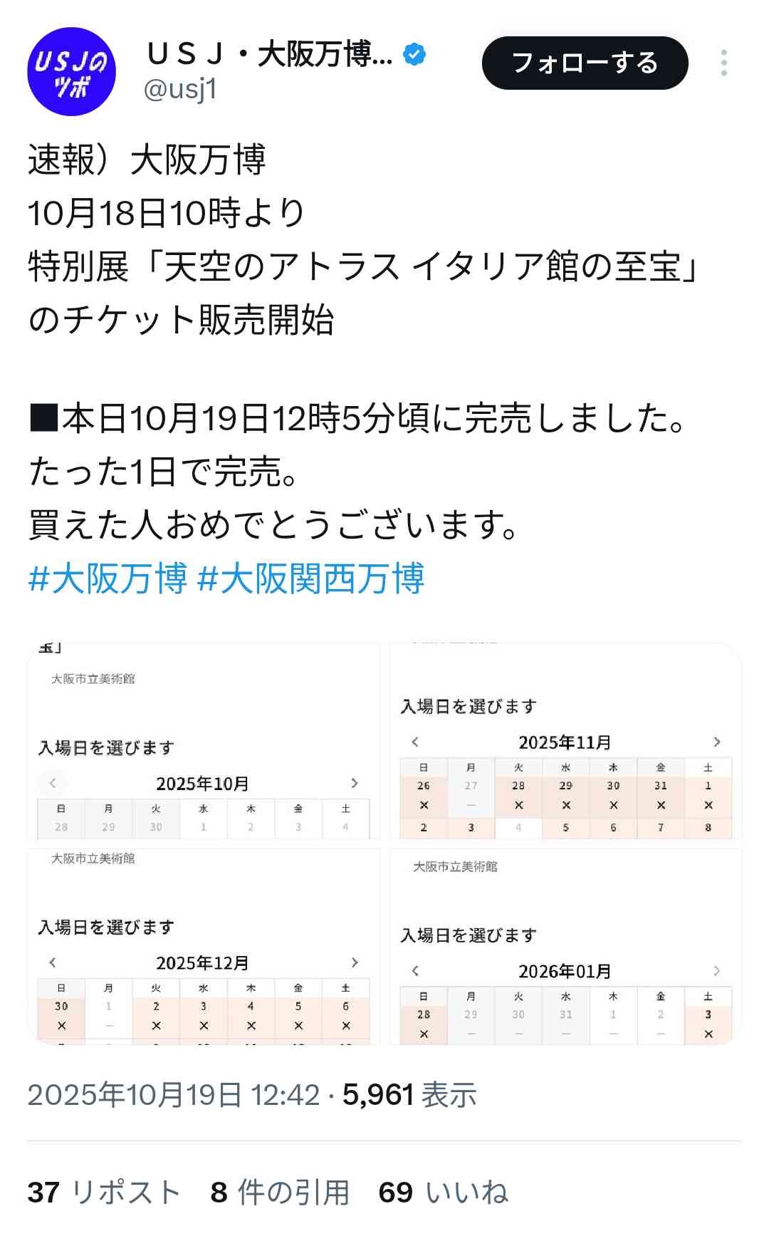 これも万博の時みたいに2日前枠開放とかあるんか?