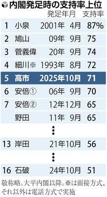 新政権への期待というご祝儀相場と史上初の女性総理というボーナス要素まで加味して7割はちょっと低いんじゃなかろうか