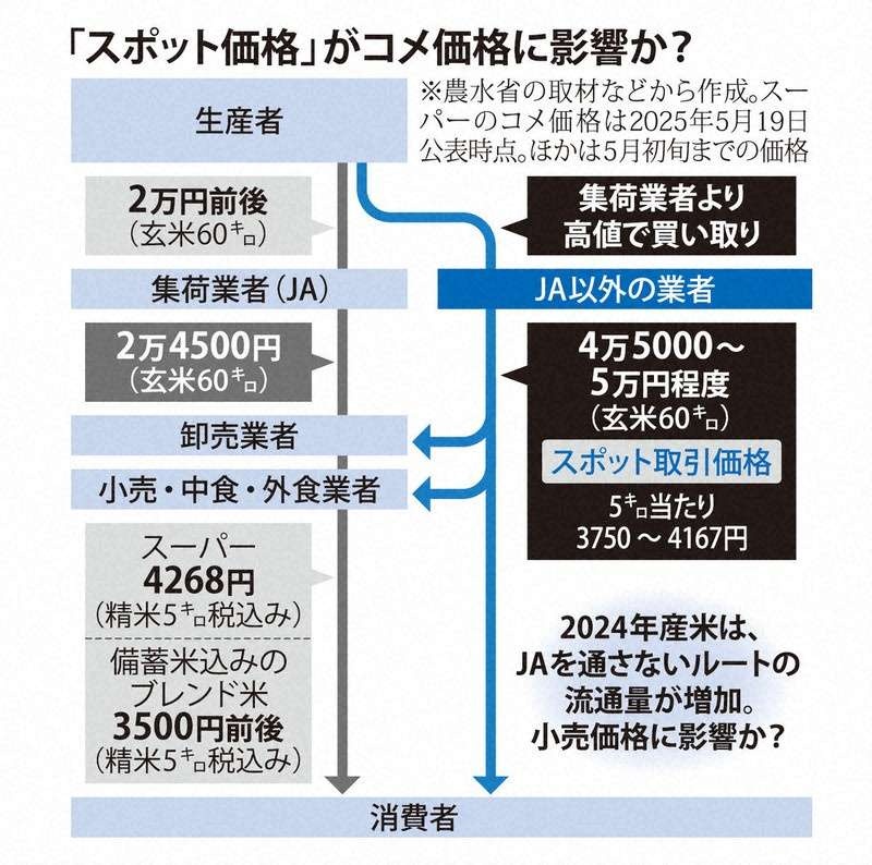 べつに必ずJAに売らなければいけない訳でもないからお前が出した>>8の表みたいに別ルートで流れて高騰してる訳で
