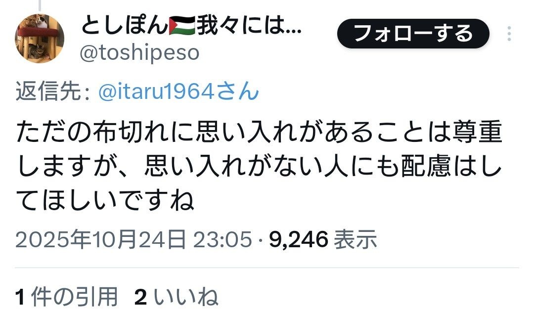 ただの布切れを損壊したくなるなんて思い入れ強すぎやんw