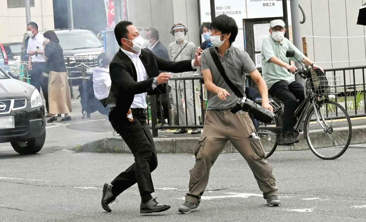 「大きな音が出て振り返ると白煙が上がり、バズーカのようなものが見えた。怖かったが山上被告を取り押さえようと反射的に体が動いた」