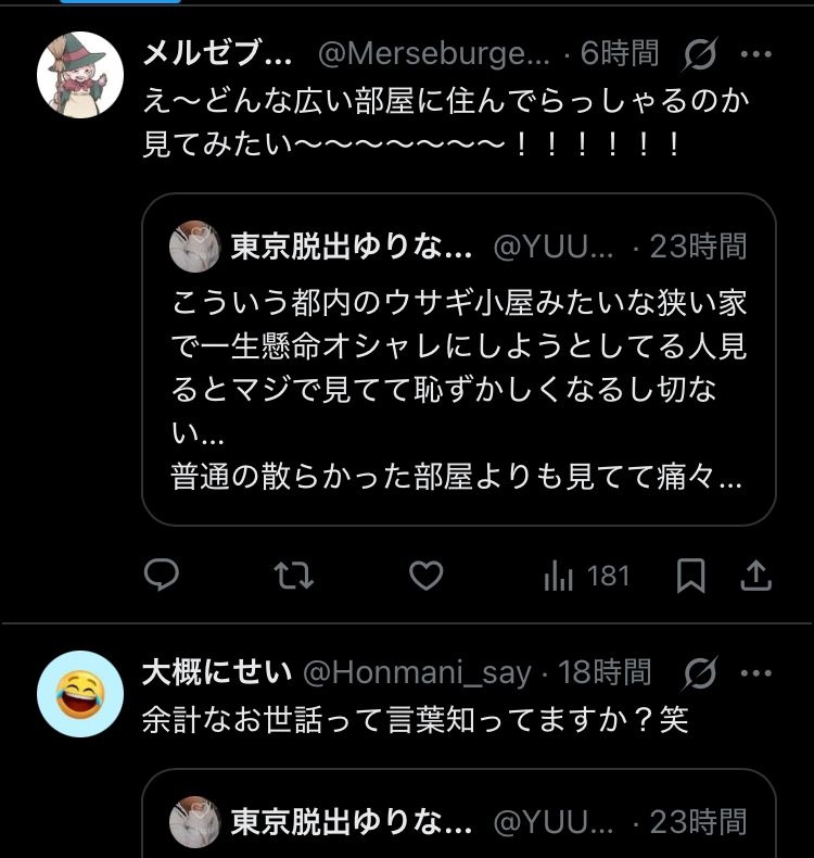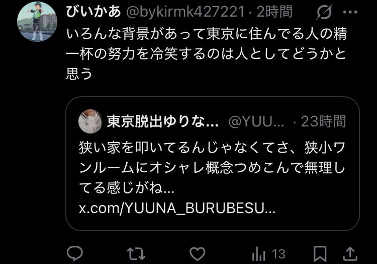 こういう都内のウサギ小屋みたいな狭い家で一生懸命オシャレにしようとしてる人見るとマジで見てて恥ずかしくなるし切ない…