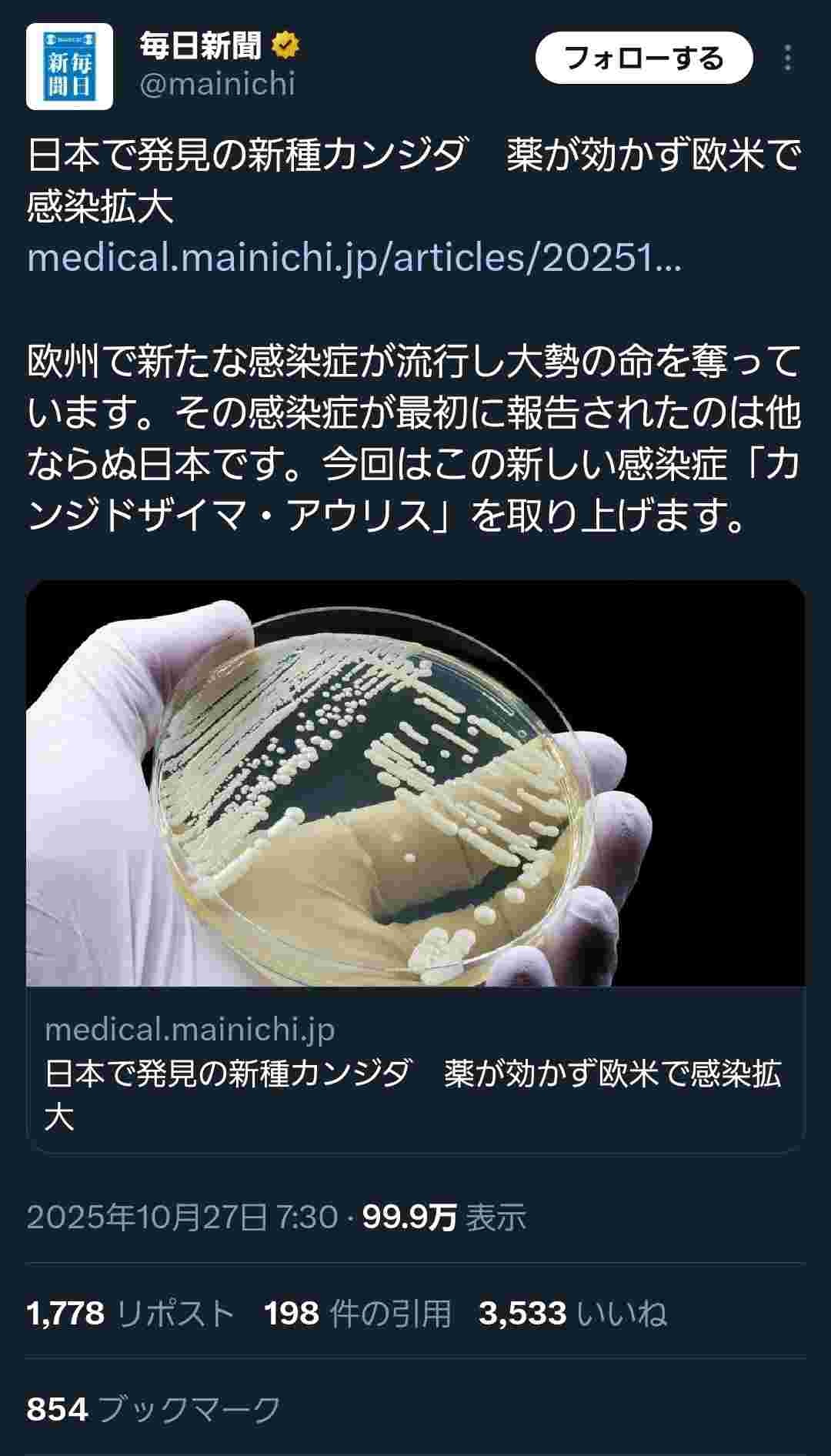 アジアンが欧米行ったらコロナの次はカンジドザイマアウリス!と指差されるわけか