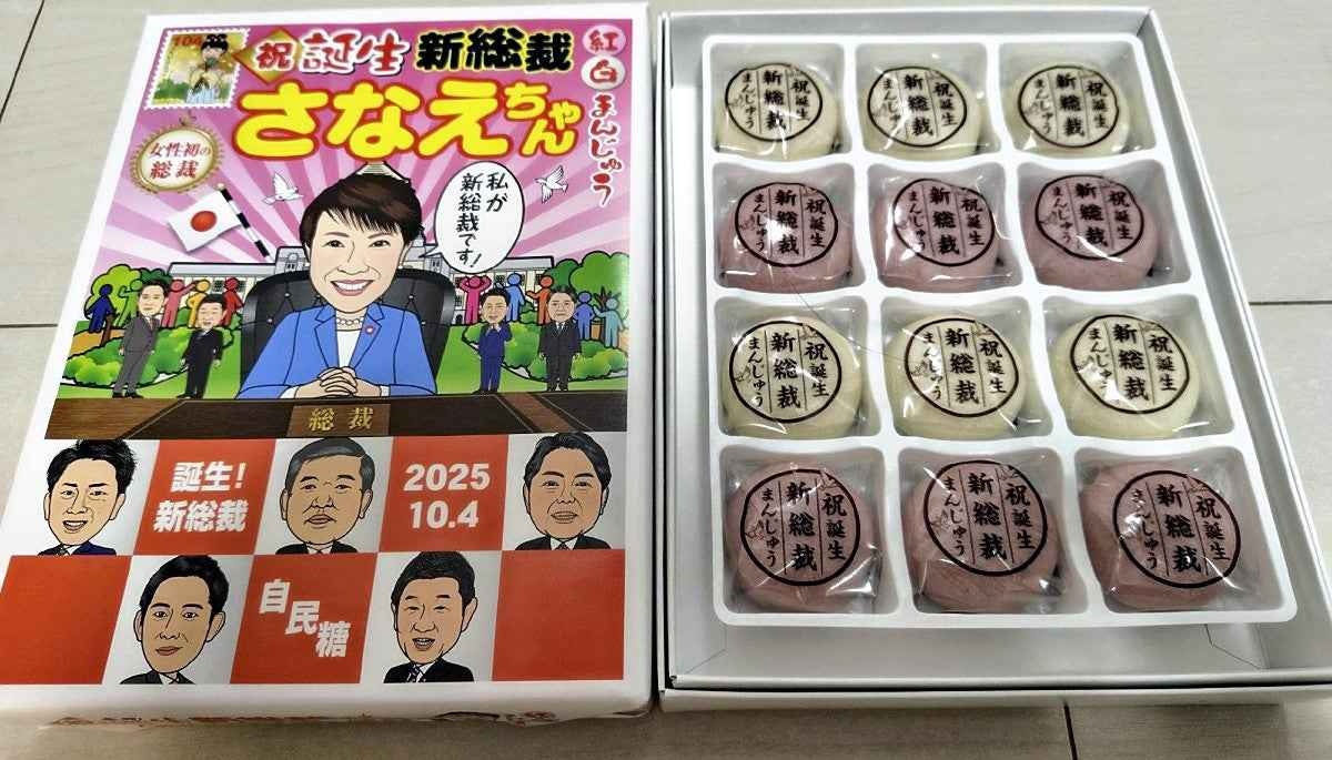 ホテル経営などを手掛ける奈良市の「ワールド・ヘリテイジ」は17日、パッケージに高市氏の似顔絵を描いた紅白まんじゅう(1箱税込み900円)を発売。当初用意した1680箱は10月中に売り切れたという。