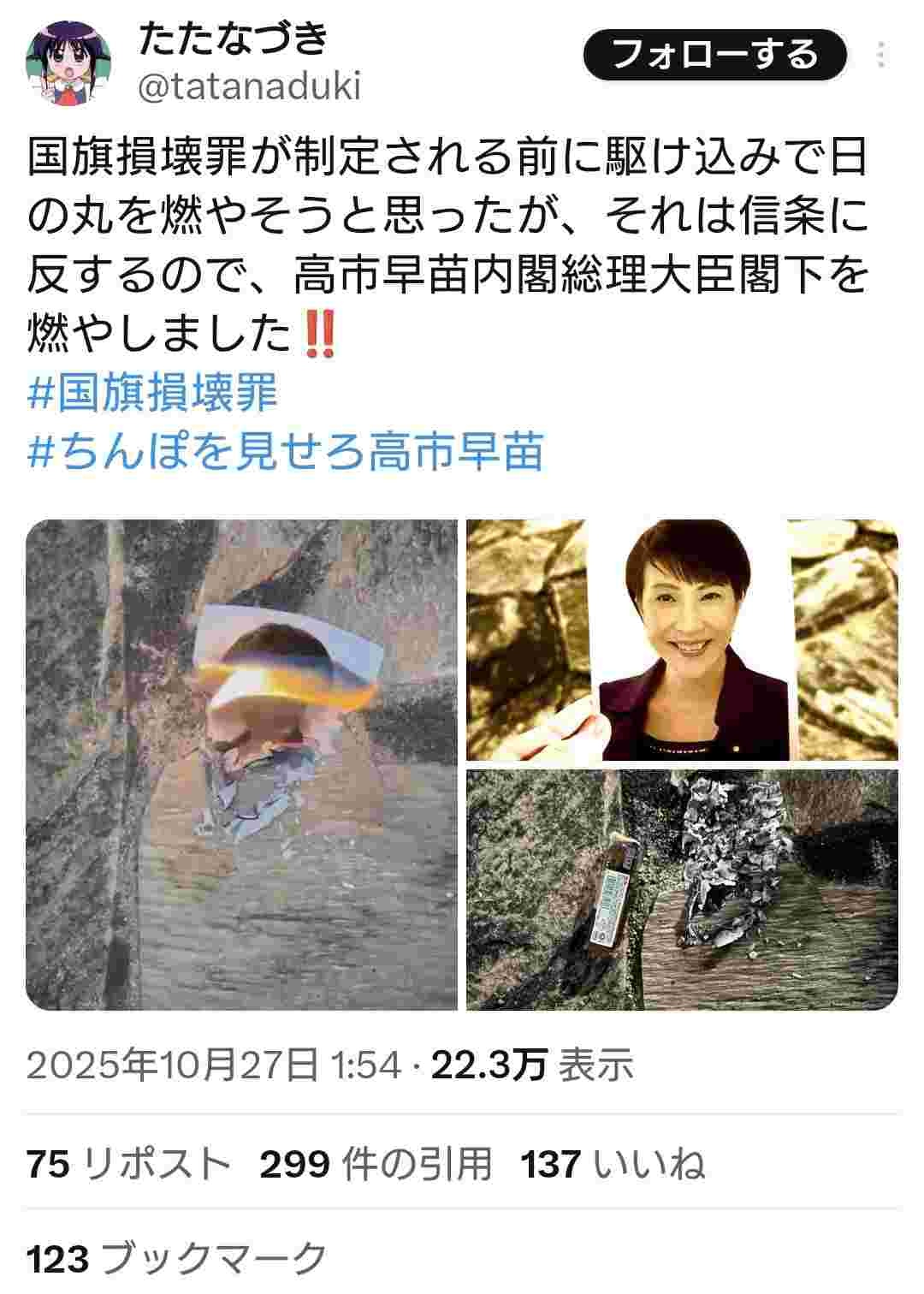パさん「高市早苗内閣総理大臣閣下の顔写真を燃やしました‼」