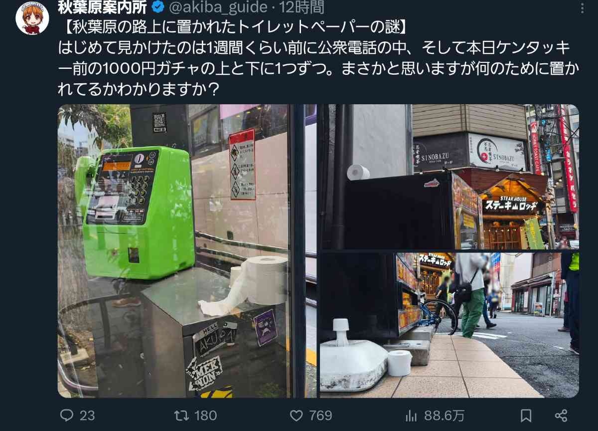 秋葉原でトイレットペーパーが拡散してるのは何か意図があるのかそれともただの悪ふざけなんだろうか