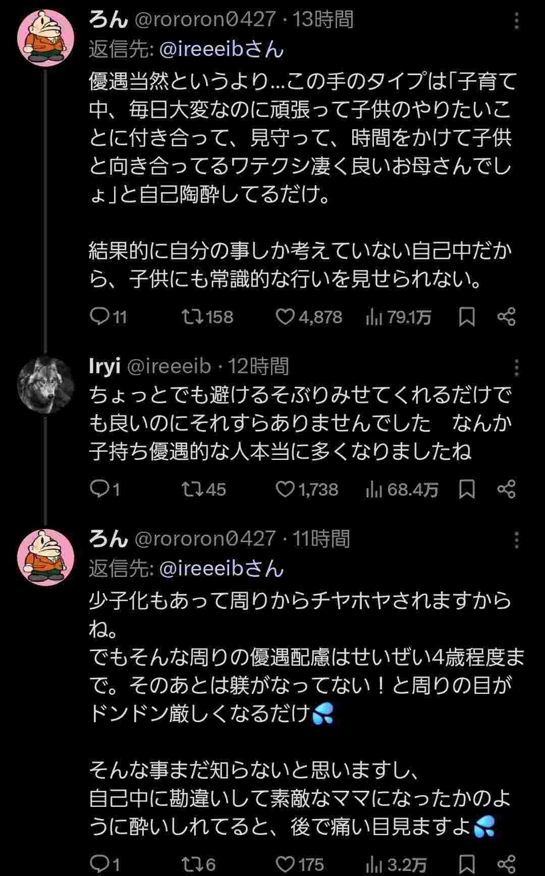 そもそも子持ちは自己責任で普段独身やら煽るくせに公共の場で助けてもらえると思うな