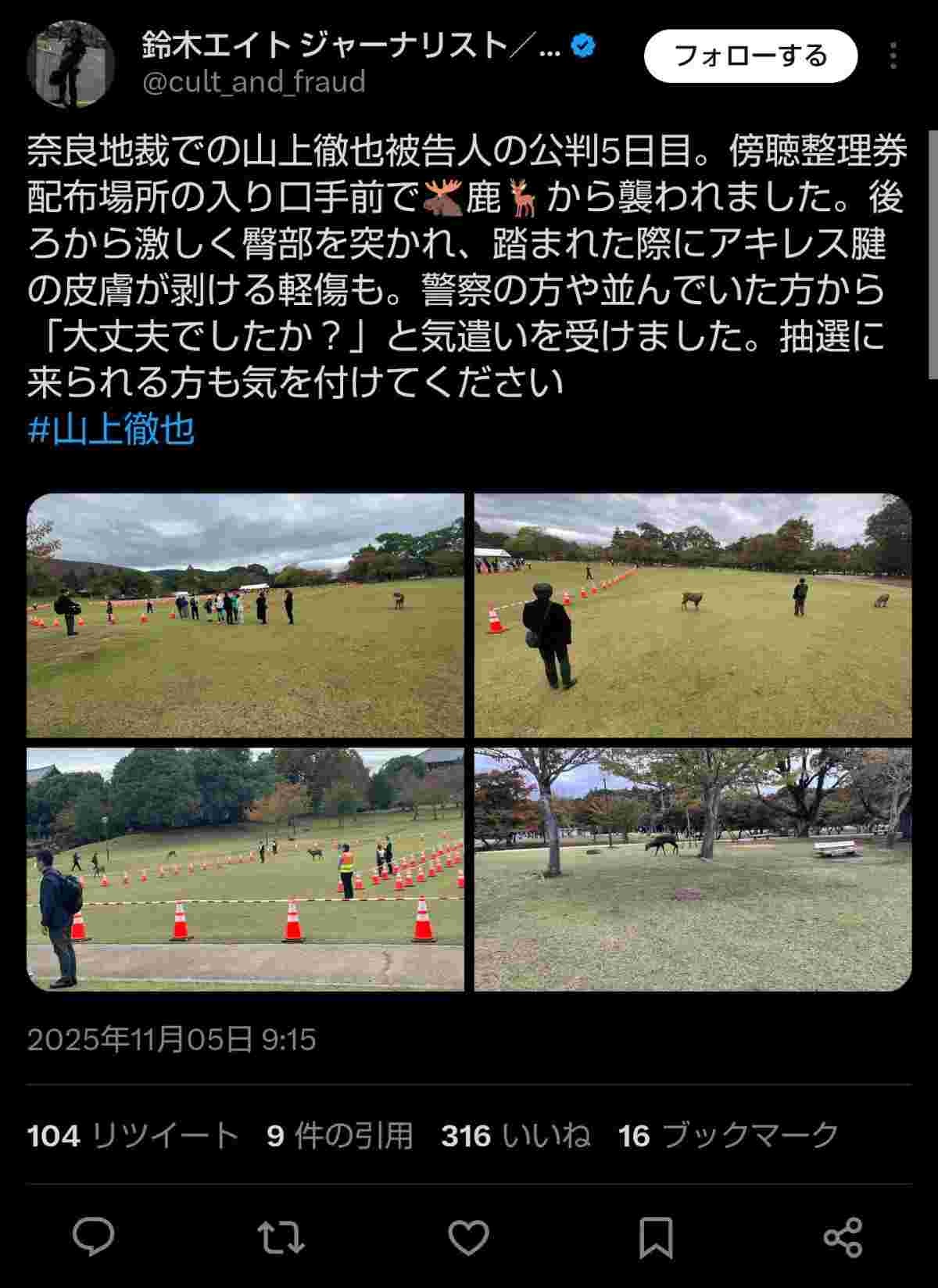 山上事件の傍聴列で鹿に襲われるとか、これも何かの因果応報ってことになっちゃうのかな