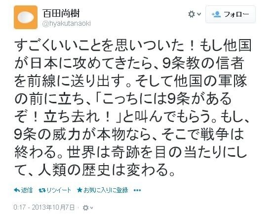 百田的には9条違反なんだな