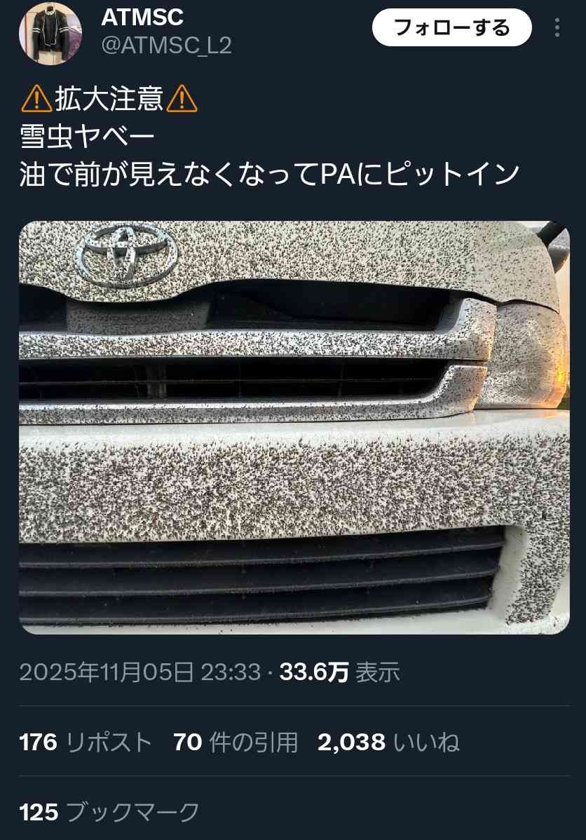 まだ早いんじゃねーか?と思ったけどその10日後に初雪来てたから雪虫はすごいわ
