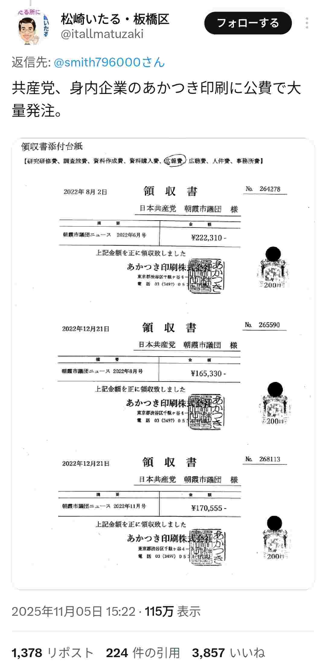 これ自民や維新なら普通の印刷所じゃんwwとか言わないだろ