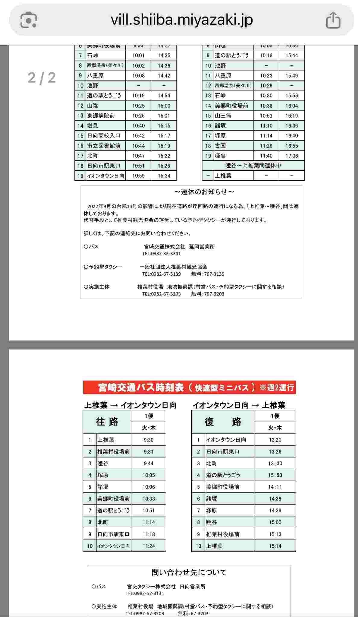 椎葉村は台風被害で国道寸断されたせいで、村外からの公共交通がないんやぞ
