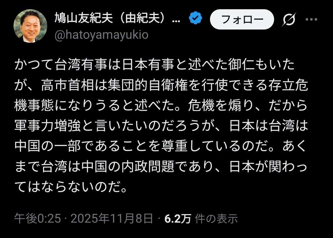 台湾じゃなくて中華民国って呼んでるなら鳩山批判するのもまあわかるけど
