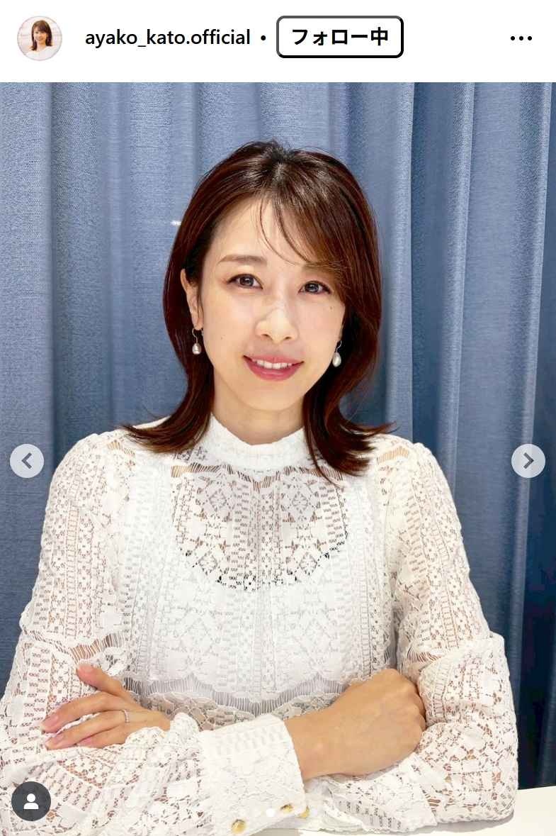 フリーアナウンサーの加藤綾子(40)が8日までに、自身のインスタグラムを更新。MCを務める番組出演での衣装を投稿した。