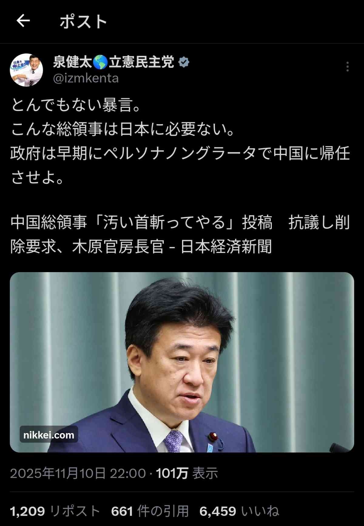 べつにいいんだけど、これ支持すると高市の発言肯定することになるけどいいのか?