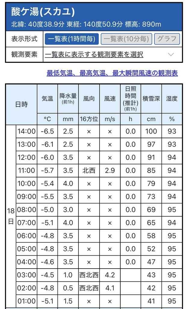 酸ヶ湯って標高高いだけあって延々と最高気温がマイナスの日がつづくねんな