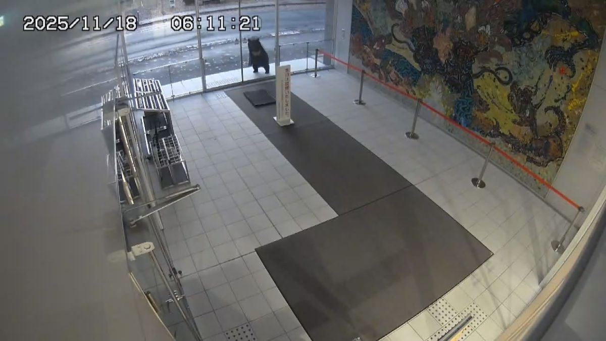 クマは東の方(盛岡城跡の方向)から走ってきて教育会館の自動ドアに体当たりし、逃げ去っていきました。