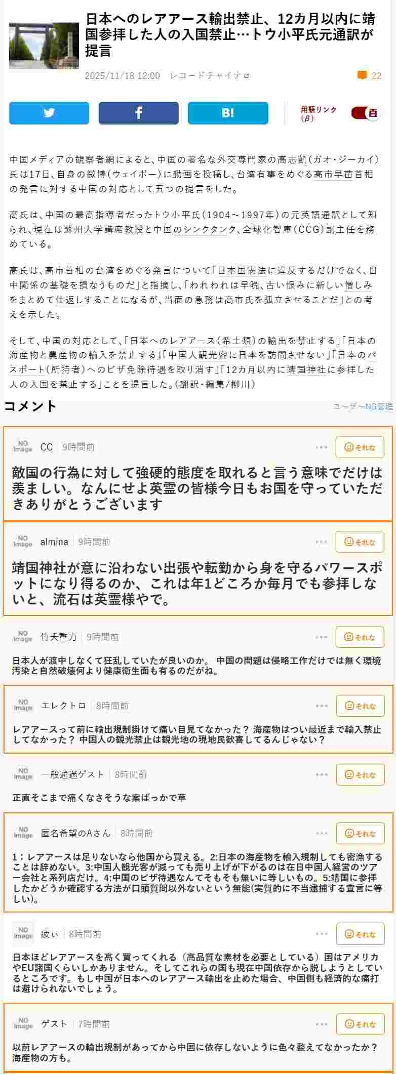 これは年1どころか毎月でも参拝しないと、流石は英霊様やで。 」日本人「レアアースって前に輸出規制掛けて痛い目見てなかった?
