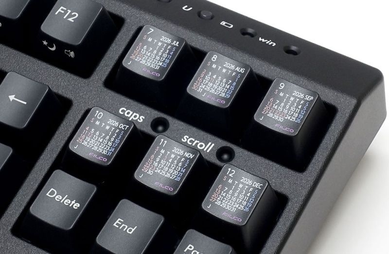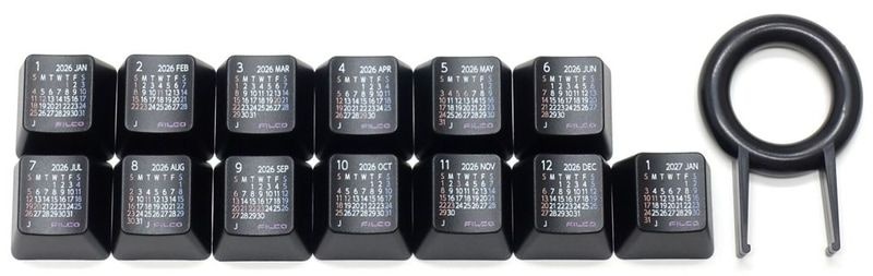 FILCO Calendar Keycap Set 2026は、手元でカレンダーを確認できるキーキャップセット。2026年1月から2027年1月の計13カ月分がセットになっており、日本の祝日表記もある。