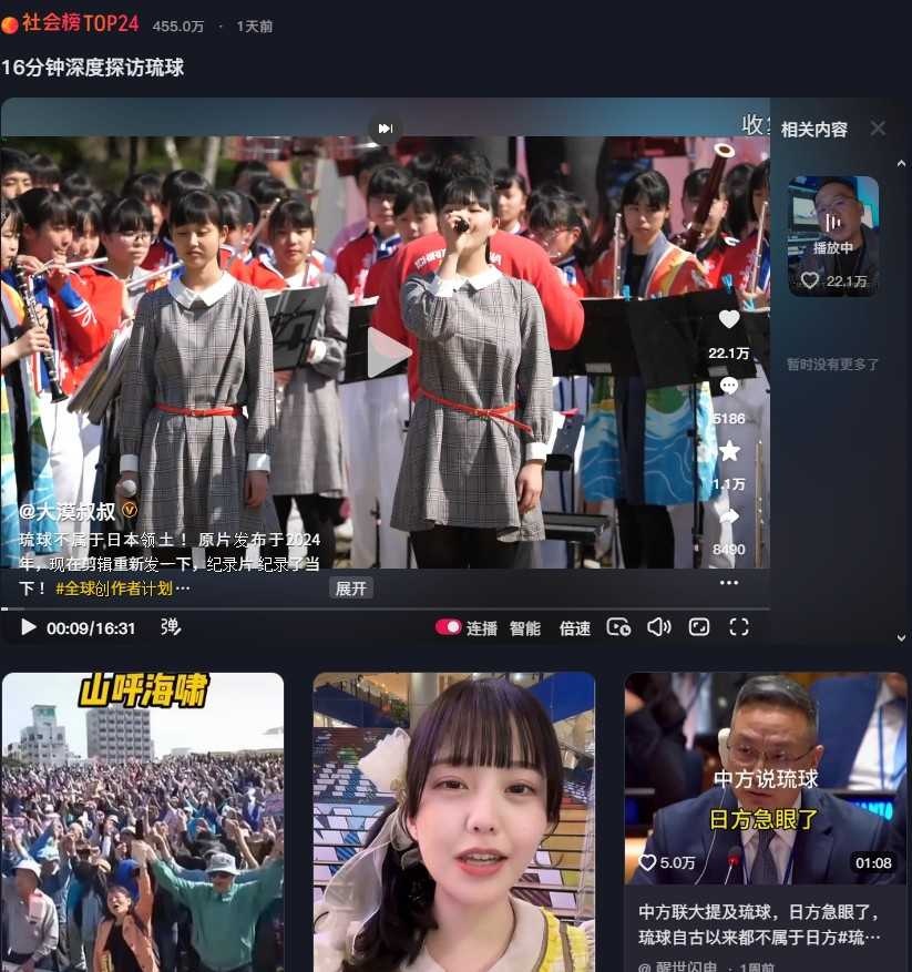 中国のNo.1動画サイト、「琉球は日本領土ではない」「日本人の琉球侵略を許すな」ネタで連日とんでもなく盛り上がる…