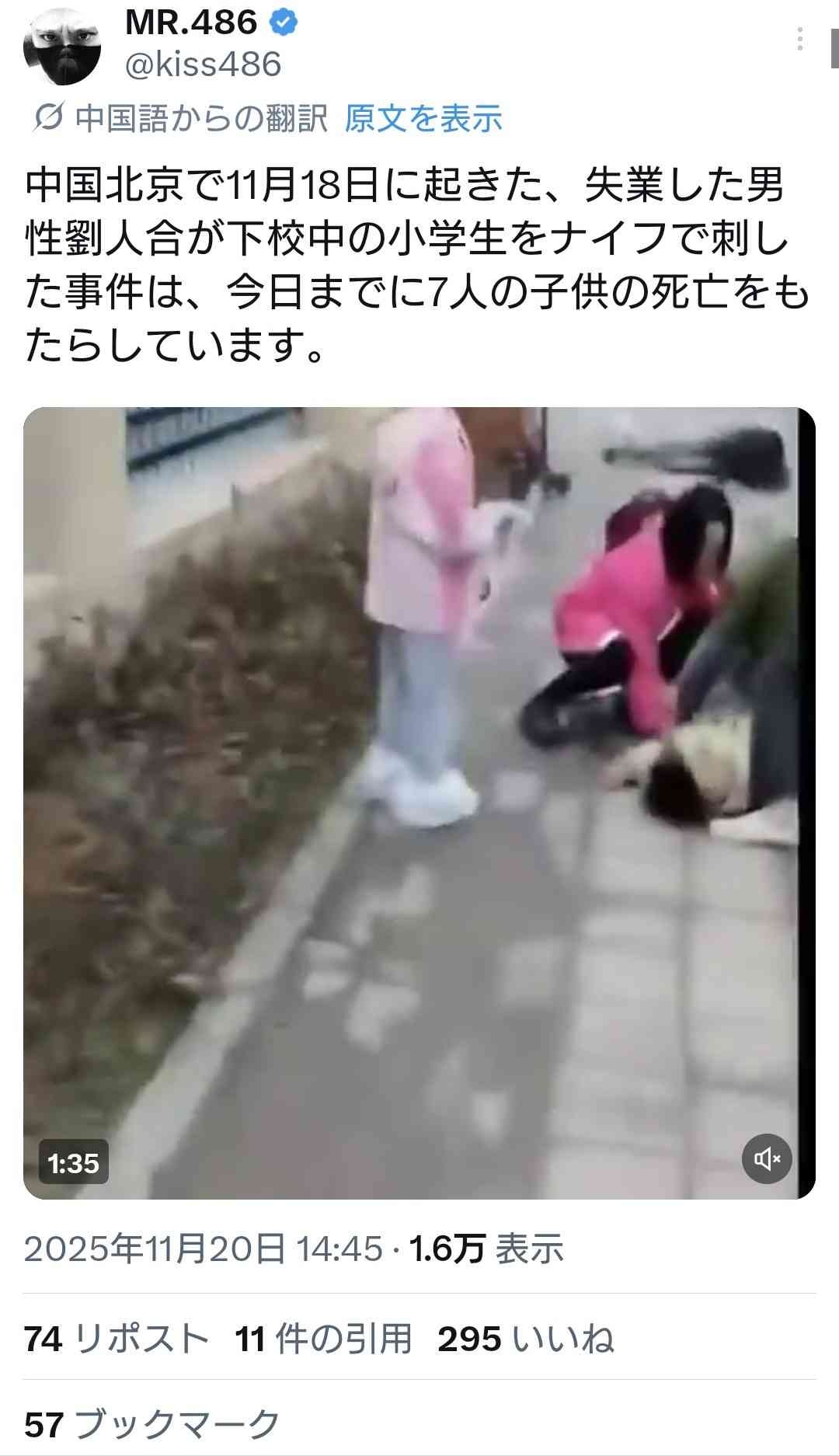 中国北京市にて失業した男がナイフで小学生を襲撃、児童7人が死亡